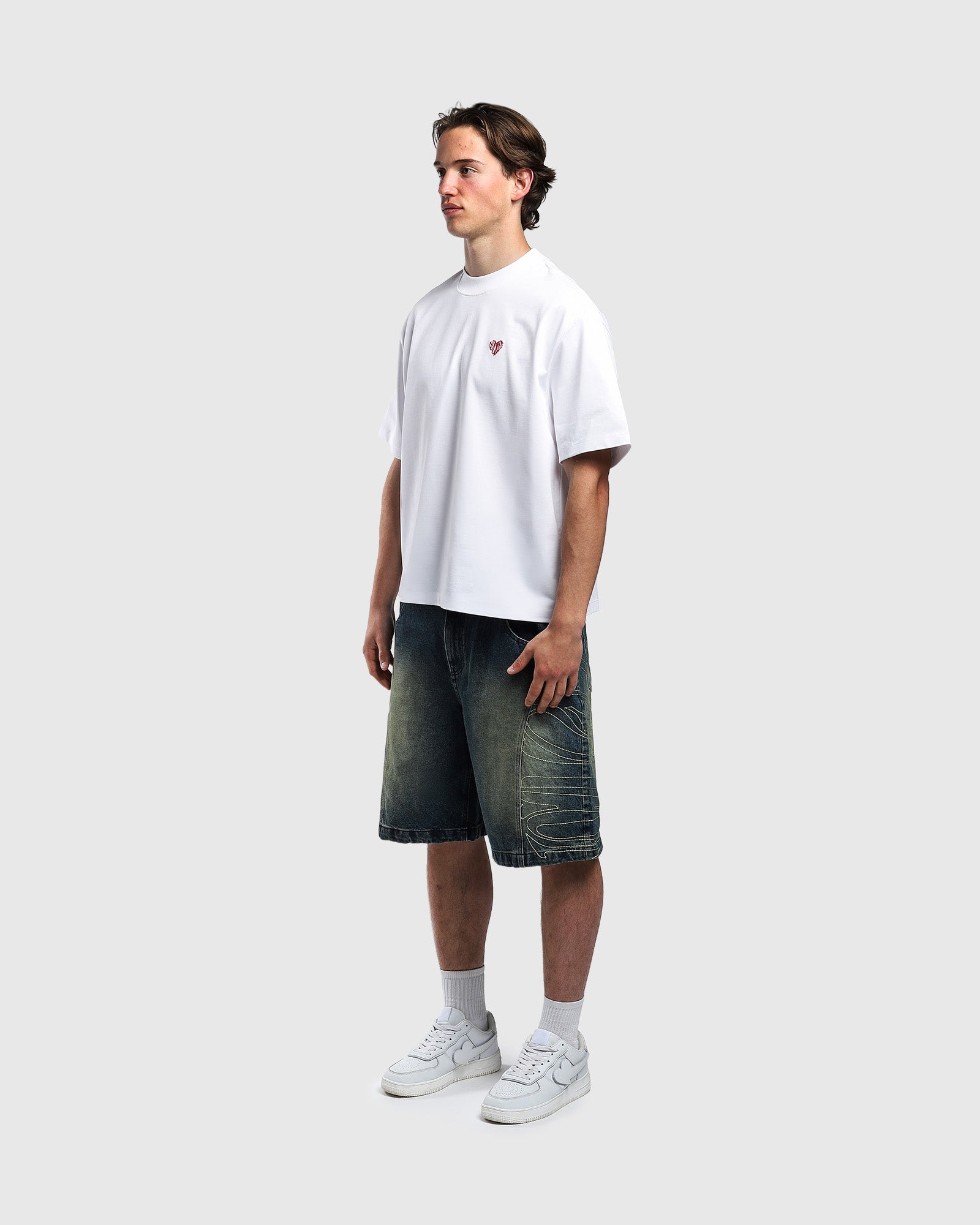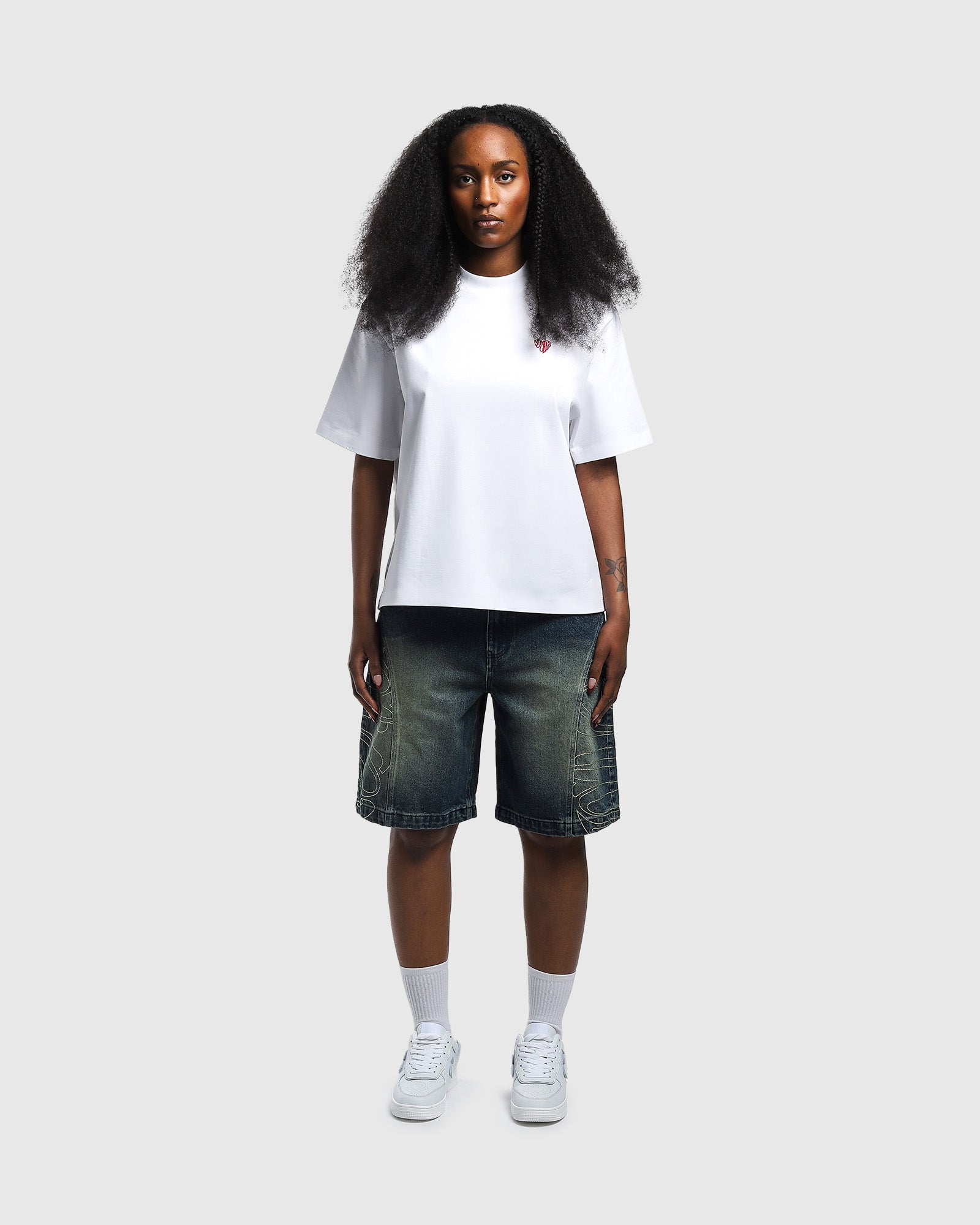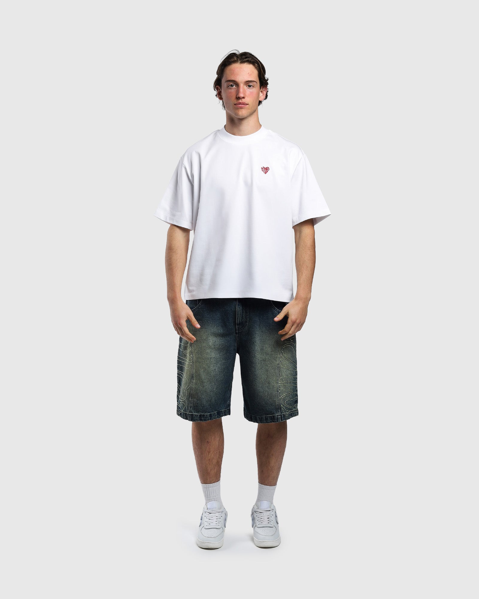 Topstitching of the logo on the sides of legs
