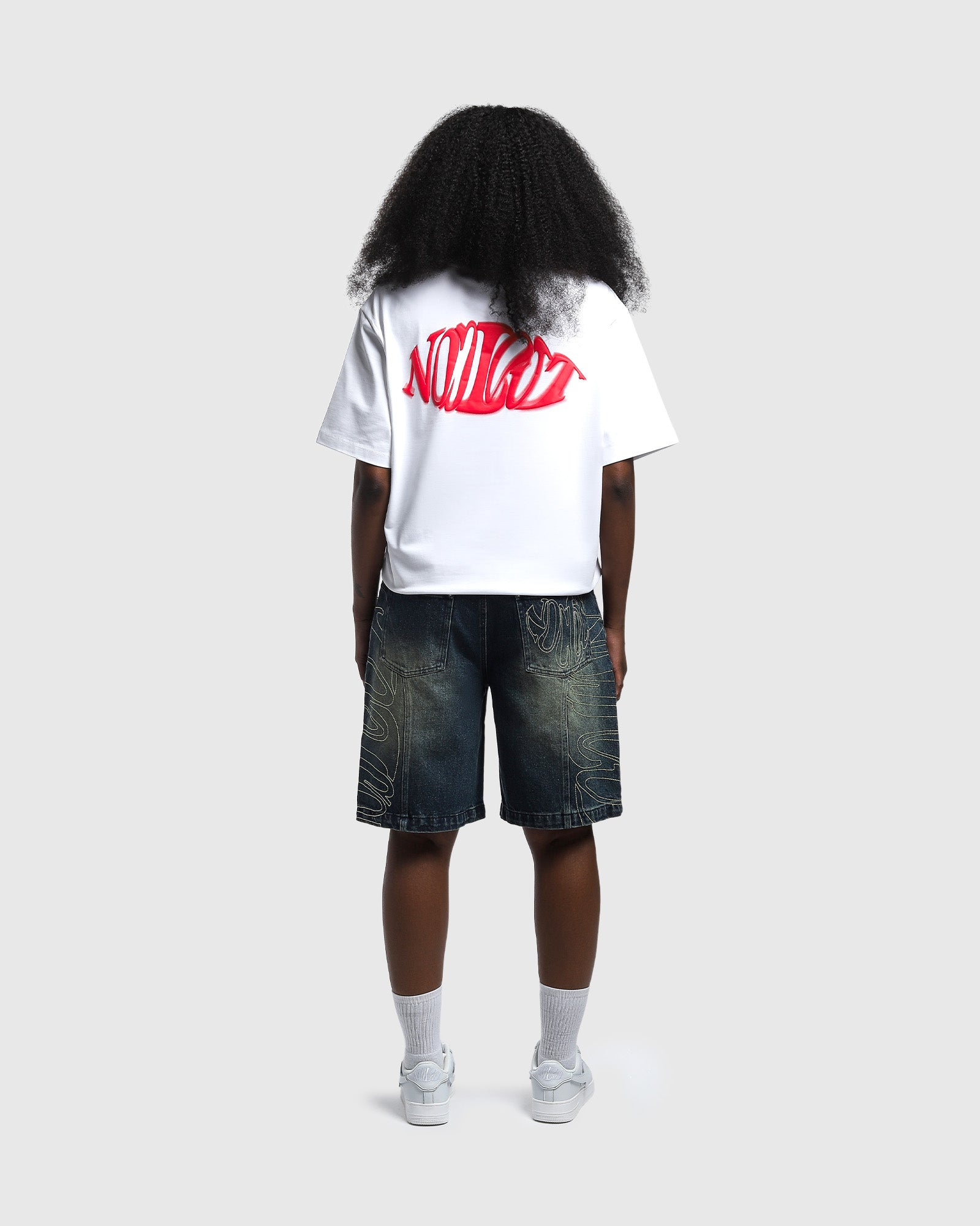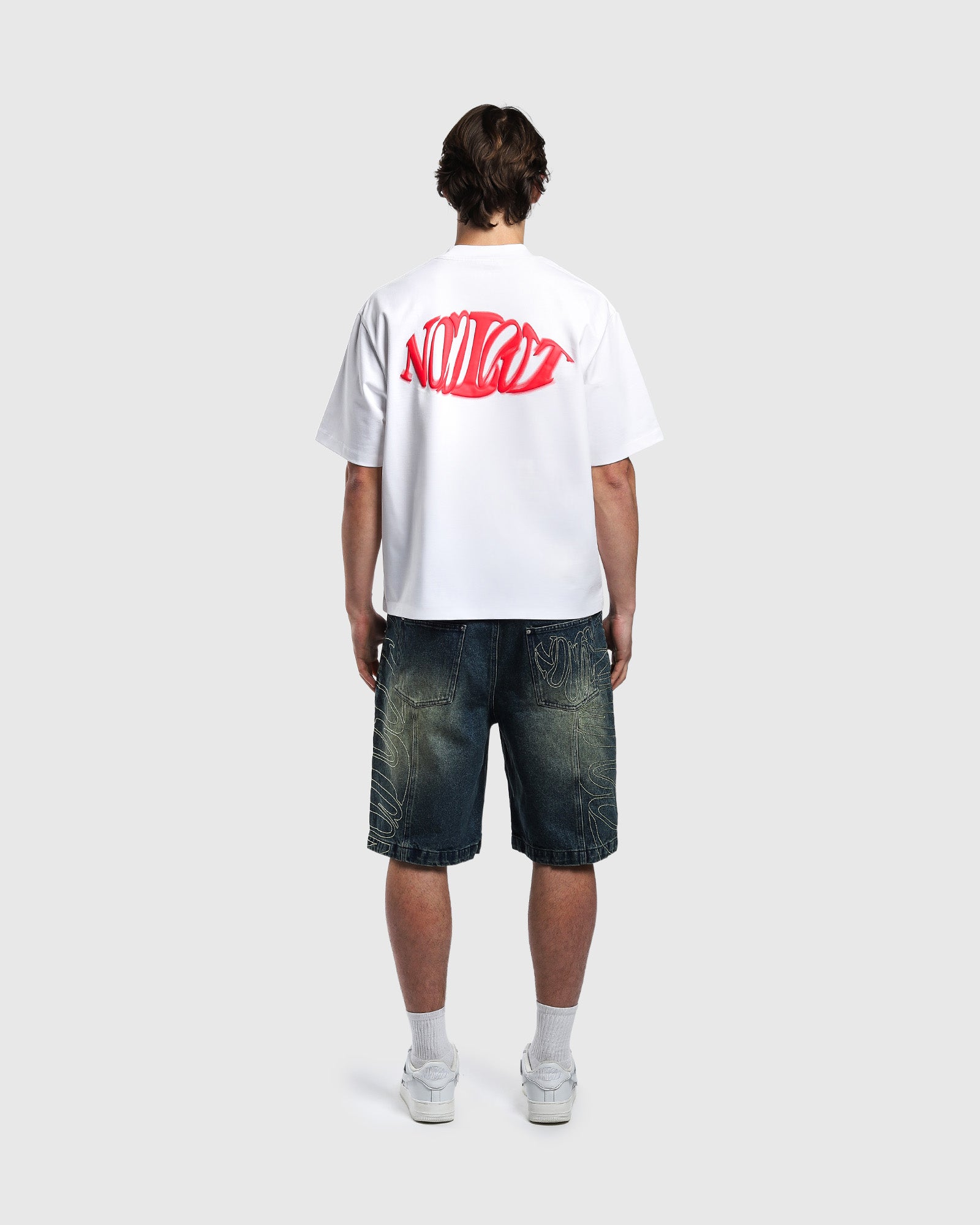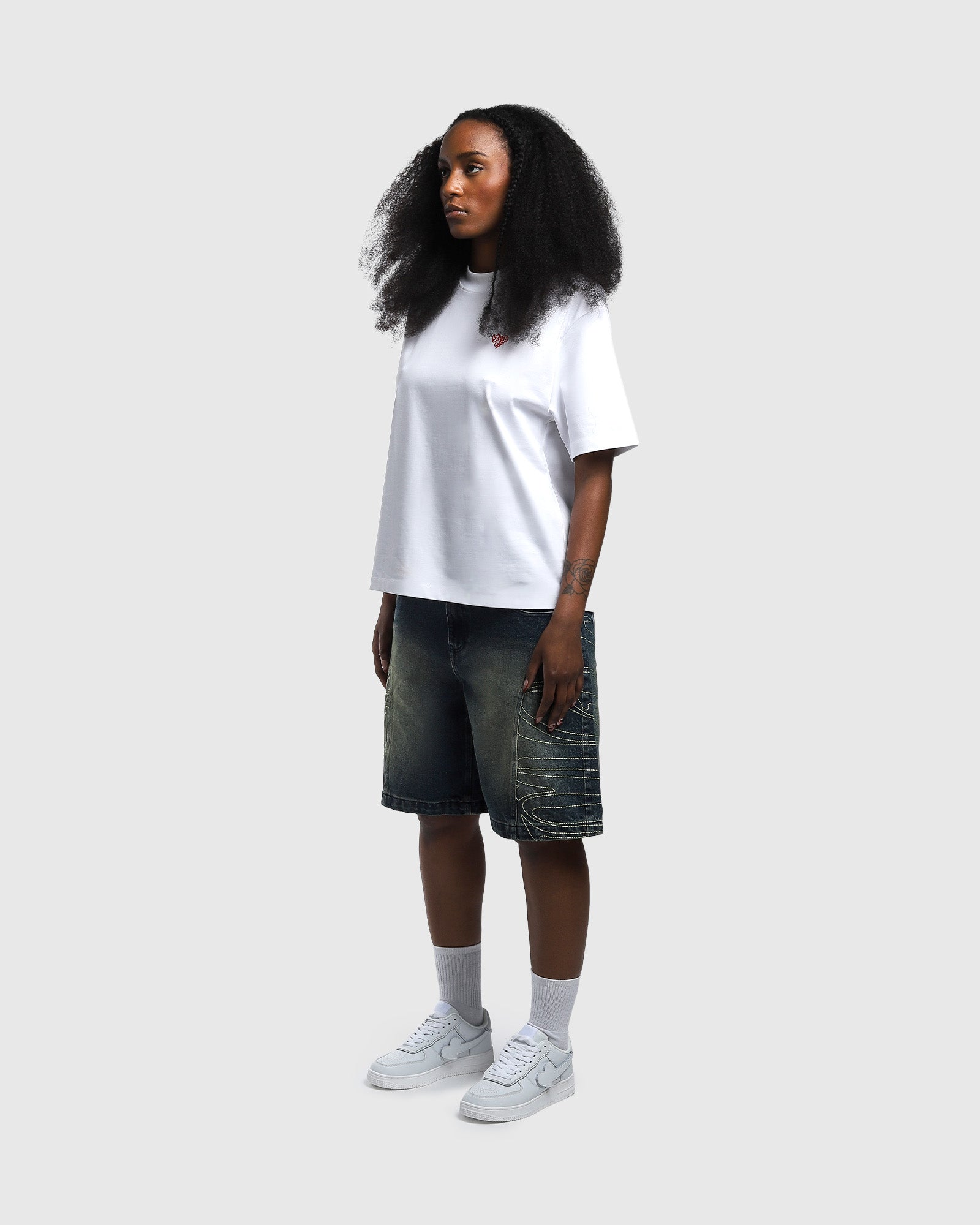 Topstitching of the logo on the sides of legs